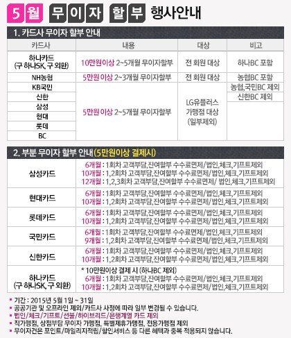 2015년 05월 카드결제 무이자행사 안내